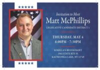 Meet Matt McPhillips, candidate for County Legislature, District 1 Thursday, May 4th 6:00 – 7:30 PM Born and raised in Sullivan County, Matt and his wife Vanessa are building a… Read More »